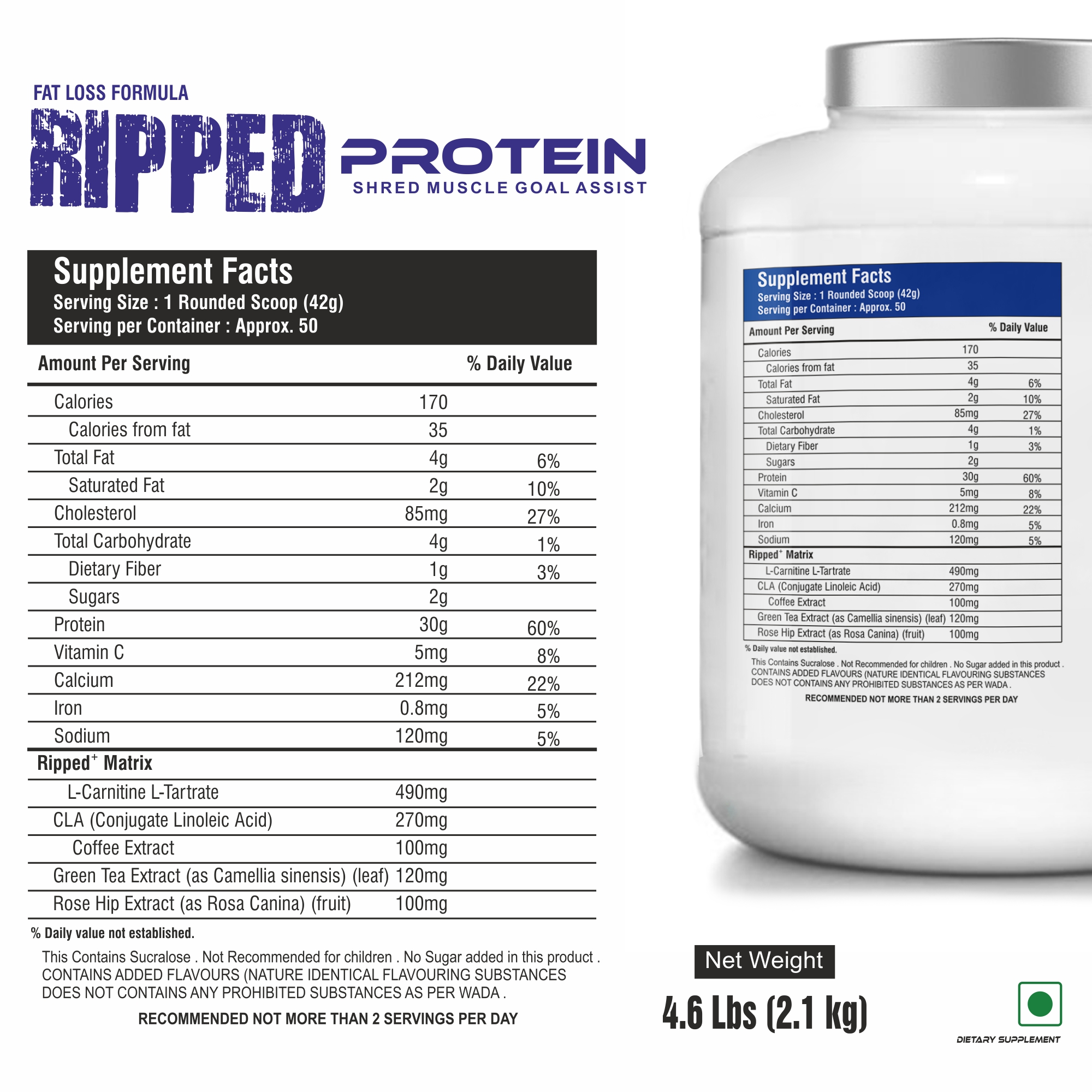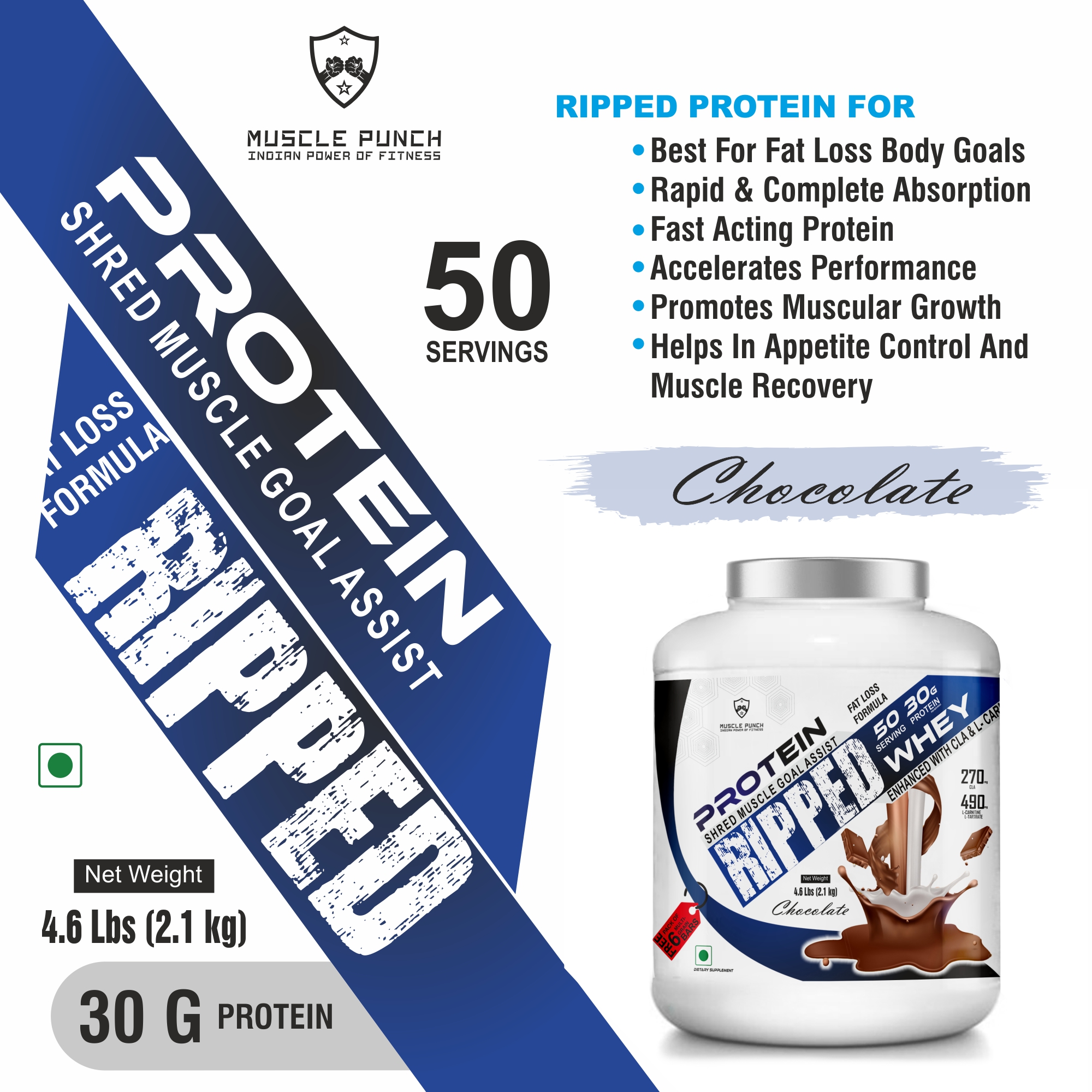 Muscle Punch – Ripped Isolate – LEAN GAIN 30 gm Protein – Fat Loss Formula – 100% Isolate Whey Protein – Chocolate Fudge – 2 KG